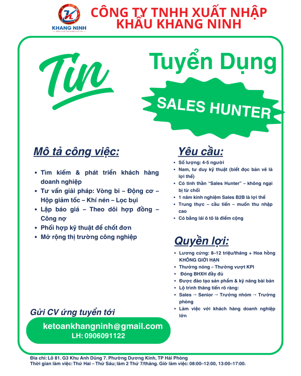 [HẢI PHÒNG] CÔNG TY TNHH XNK KHANG NINH